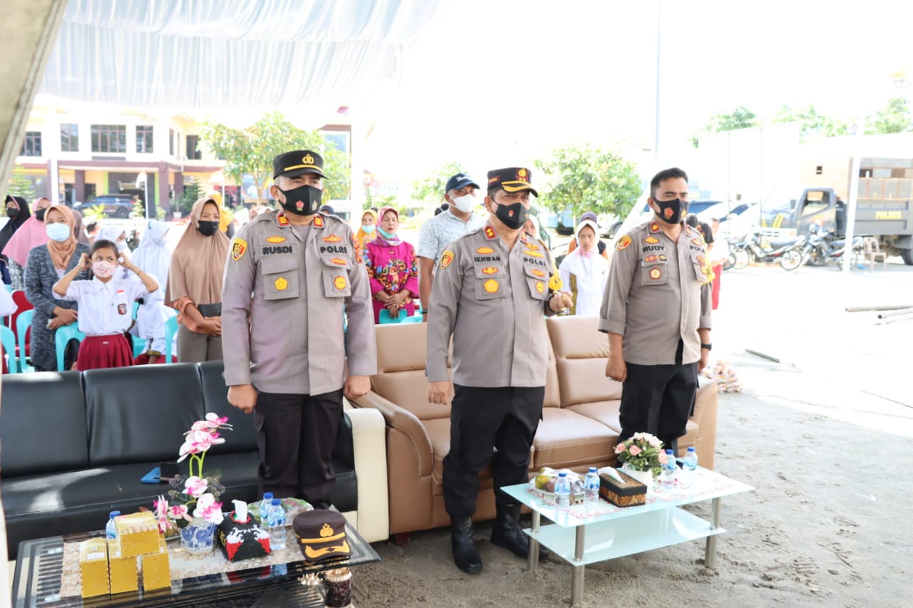 Gelar vaksinasi anak-anak berlangsung dengan sangat gembira karena dihibur langsung oleh Kapolres Batu Bara AKBP Ikhwan Lubis bersama Wakapolres Kompol Rudy Candra, yang memberian jajanan serta hadiah lomba puisi dan pembrian santunan kepada anak yatim.