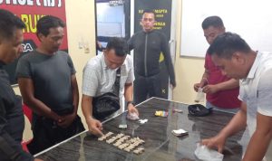 Pada saat dilakukan penggeledahan ditemukan barang bukti, 64 Bungkus kecil daun ganja kering, 17 Lembar bungkus nasi kecil yang diperkirakan untuk membungkus daun ganja kering, 1 Buah kaca pirex, 1 Buah Hekter, 1 Kotak anak Kekter, 1 Buah jacket warnah hitam, 1 Buah topi warnah hitam, 1 Bungkus sisa narkotika jenis daun ganja kering dan uang tunai senilai Rp. 20.000,-