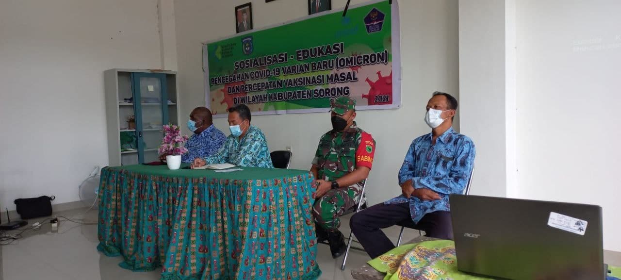 Bertempat di Aula Puskesmas Majaran Kelurahan Matawolot Distrik Salawati, Babinsa.Koramil 1802-03/Salawati. Serda Teguh Isdianton menghadiri undangan Sosialisasi dan Edukasi pencegahan Covid-19 Varian baru(Omicron) dan percepatan Vaksinasi Masal di wilayah Kabupaten Sorong. Jumat, (04/03/2022).