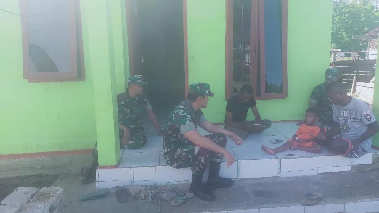 Koramil persiapan Salawati Selatan Kodim 1802/Sorong. Serda Edo bersama 9 anggoto melaksanakan komunikasi sosial dengan keluarga Pak Pilipus warga Kampung Salawati Distrik Salawati Kabupaten Sorong. Selasa (01/02/2022).