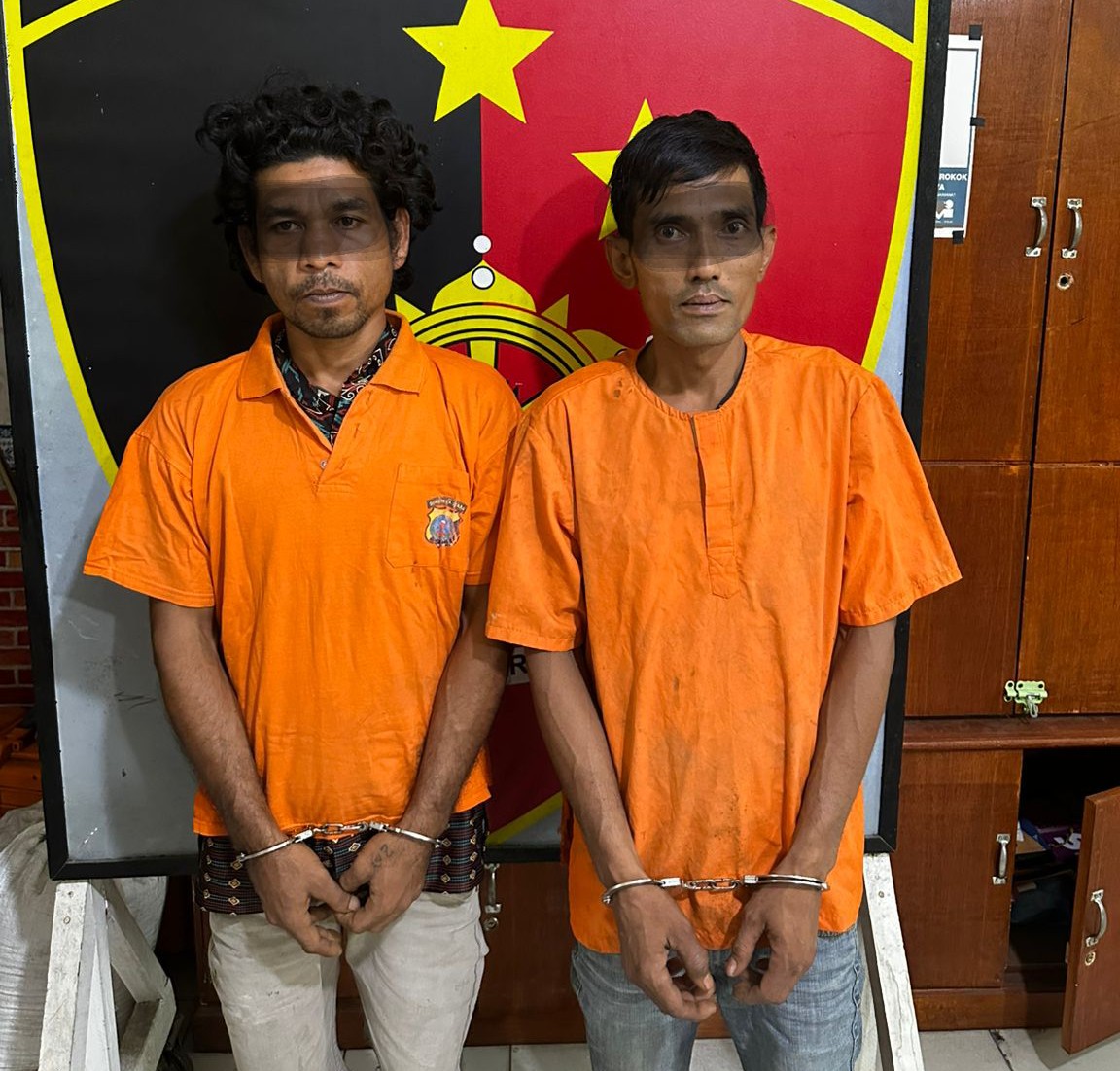 Dua pria inisial MZH, (38) warga Dusun I Desa Aras Kecamatan Air Putih dan MA, (39) warga Dusun Rambutan Desa Tanah Merah Kecamatan Air Putih Kabupaten Batu Bara akhirnya ditangkap Tim Opsnal Polsek Air Putih di Desa Aras, Kecamatan Air Putih. 22 April 2026.