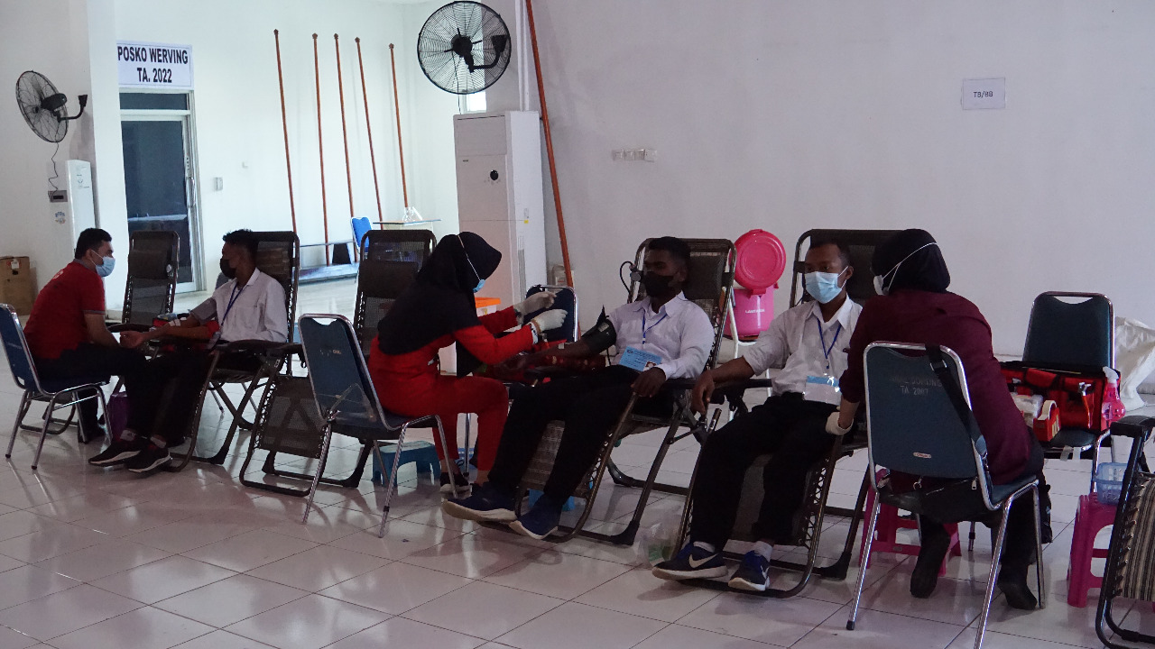 TNI AL. 650 orang calon siswa Bintara dan Tamtama PK TNI AL gelombang I Tahun 2022 Panda Sorong melaksanakan bakti sosial donor darah yang diadakan oleh Dinas Kesehatan (Diskes) Pangkalan Utama TNI Angkatan Laut (Lantamal XIV) berkerjasama dengan PMI Kota Sorong, bertempat Gedung Serba Guna (GSG) Markas Komando (Mako) Lantamal XIV, Jl. Bubara No. 01, Kota Sorong, Prov. Papua Barat. Jumat (14/01/22).