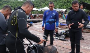 Lampung – Dalam rangka sertifiksi selam One Star (A1) POSSI – CMAS untuk Pejabat Utama (PJU) Korps Marinir, Komandan Korps Marinir (Dankormar) Mayjen TNI Mar Widodo Dwi Purwanto, meninjau Pelaksanaan menyelam dengan materi Latihan Perairan Terbuka (LPT) yang dilaksanakan di Resort Pulau Tegal Mas Lampung.(26/09/22).