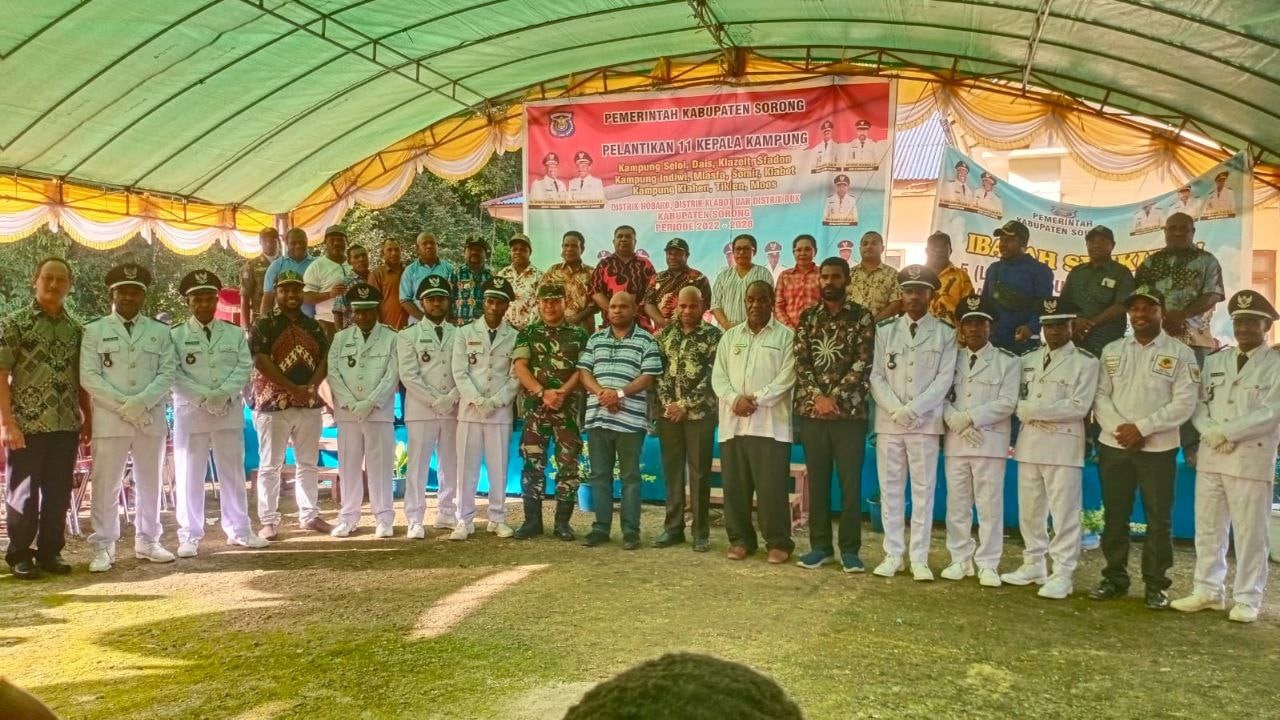 Komandan Koramil 1802-06/Klamono. Kapten Inf Subu Sagi beserta jajaran Babinsa menghadiri undangan Pelantikan Kepala Kampung Distrik Hobard, Distrik Buk dan Distrik Klabot Kabupaten Sorong. Kamis, (23/06/2022).