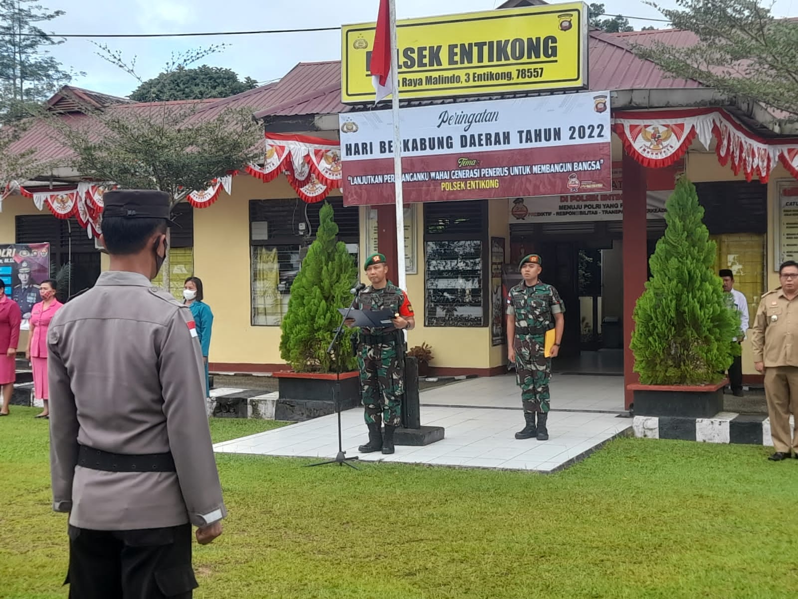 Dansatgas Pamtas RI-MLY Yonif 645/Gty Letkol Inf Hudallah, S.H. sebagai Inspektur Upacara (IRUP) Peringatan Hari Berkabung Daerah Kalbar bertempat di Mapolsek Entikong Jl. Raya Malindo, Entikong, Kabupaten Sanggau, Kalimantan Barat.