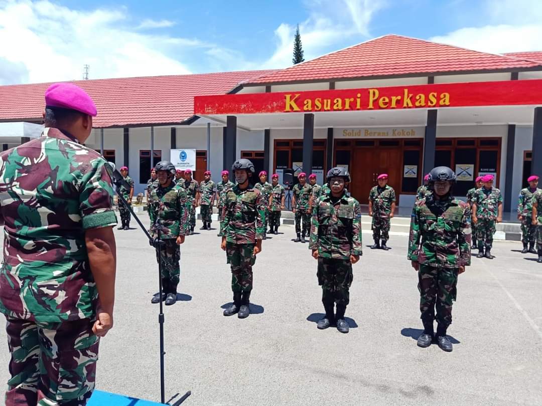 Sorong Papua Barat – Komandan Batalyon Marinir Pertahanan Pangkalan (Danyonmarhanlan) XIV Sorong Letkol Marinir Oktofiansyah Rahman memimpin upacara tradisi penerimaan prajurit remaja Yonmarhanlan XIV TA. 2022 di lapangan apel Yonmarhanlan XIV, Kota Sorong, Papua Barat. Kamis (22/09/2022).