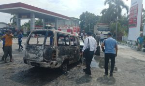 Diperkirakan akibat korsleting di bagian kabel pengapian, satu unit mobil mini bus Suzuki Carry dengan Nomor Polisi BK 1389 EZ akhirnya hangus terbakar di SPBU Desa Pakam Raya, Kecamatan Medang Deras, Kabupaten Batu Bara. 23 Februari 2026.