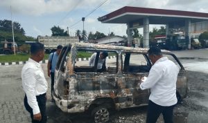 Diduga Korsleting Kabel Pengapian Satu Unit Mobil Mini Bus Hangus Terbakar