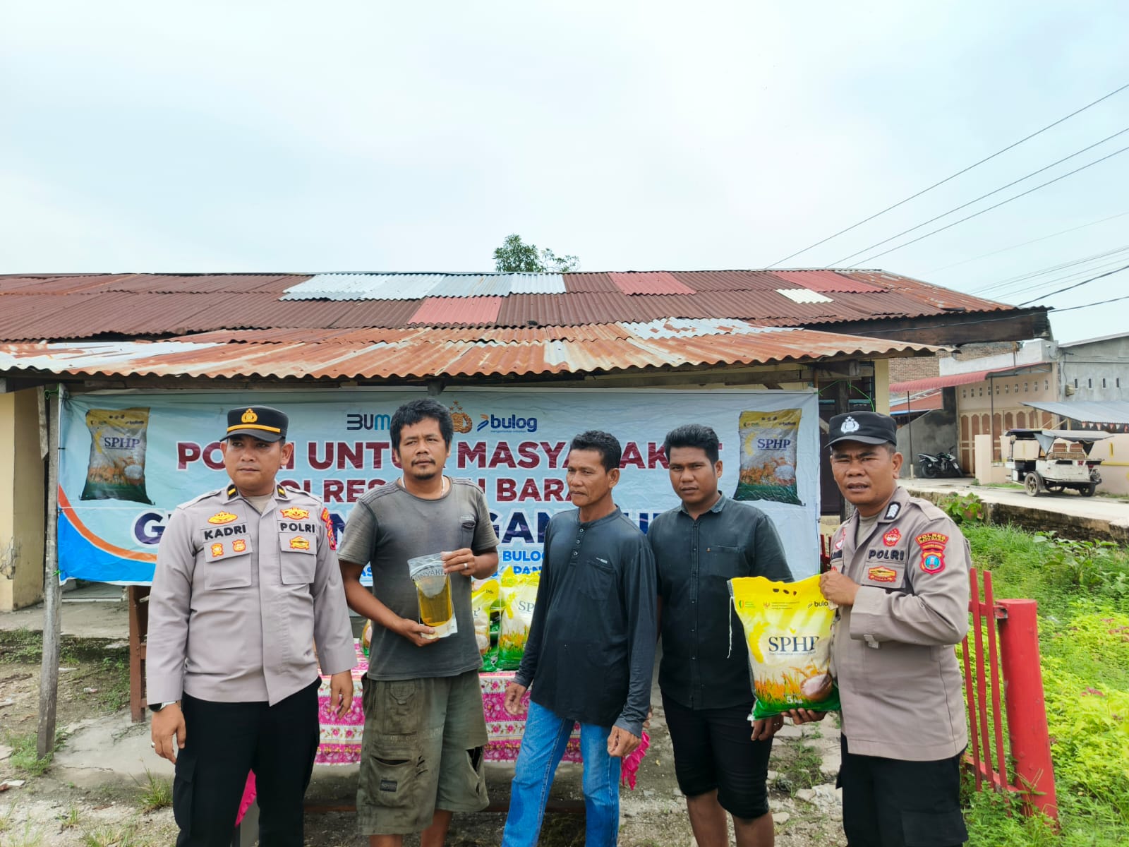 Dukung program Pemerintah kembali Kapolsek Medang Deras AKP A.H Sagala.SH bersama Ps Kasium Bripka Syaiful Amin Damanik dan Kanit Binmas Ipda Muhammad Kadri.SH terus aktif gerakan pangan murah yang secara langsung bekerjasama dengan pihak Perusahaan Umum (Perum) Bulog cabang Asahan. 27 September 2025 pukul 09.00 wib, bertempat di pelataran Mako Polsek Medang Deras.
