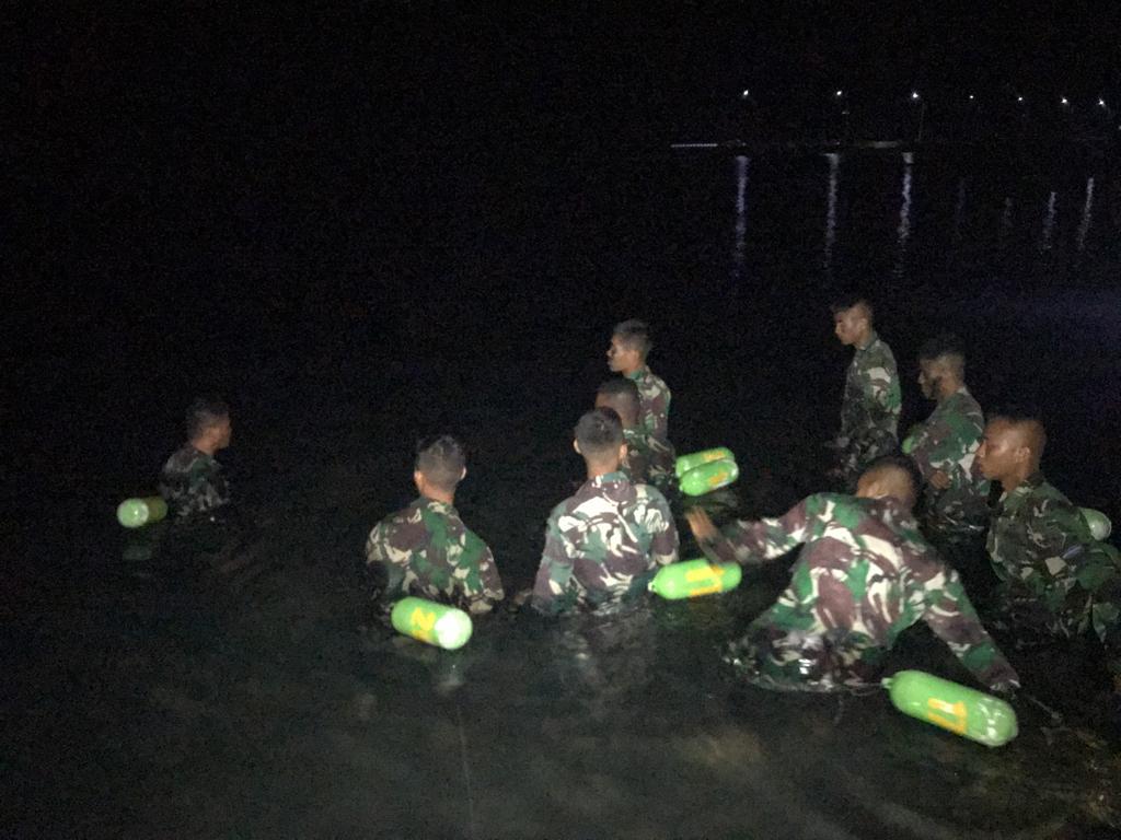 Dalam gelapnya malam tidak menyurutkan semangat para pasukan pendarat amfibi wilayah timur Indonesia menembus arus hingga dinginnya air laut yang dirangkum dalam kegiatan Latihan Perorangan Dasar (LPD) TW IV Tahun 2022. Sebelum melaksanakan renang, para prajurit melaksanakan senam peregangan agar mengurangi resiko cidera yang terjadi pada otot saat pelaksanaan renang berlangsung.