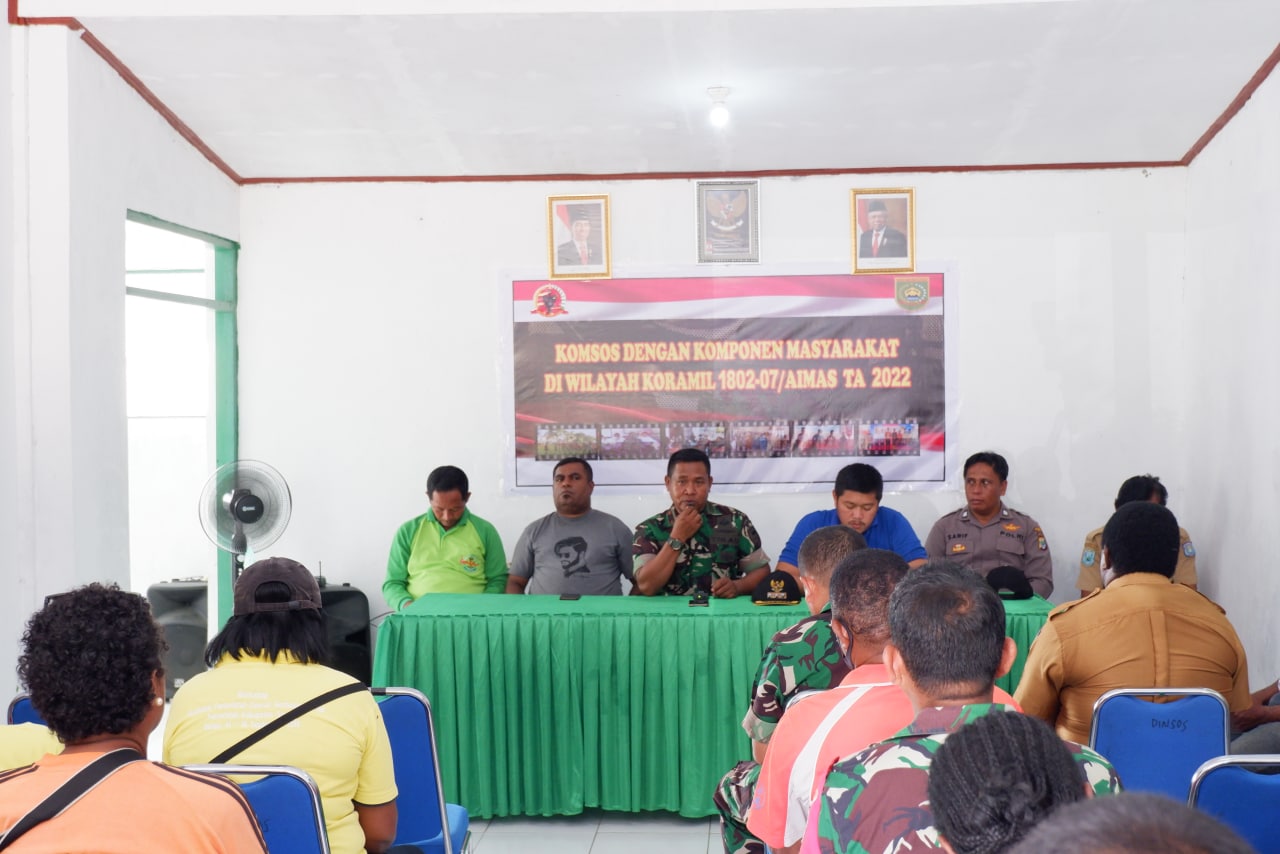 Dalam keterangan Danramil Kapten Inf. Harpin menyampaikan kegiatan Komsos bersama komponen masyarakat Koramil 1802-07/Aimas Kodim 1802/Sorong melaksanakan berbagai kegiatan seperti senam bersama (olah raga bersama), Apel bersama serta kegiatan Komsos lainnya, dimana kegiatan tersebut dihadiri oleh para pejabat distrik, lurah, Kepala-kepala Kampung dan elemen masyarakat lainnya yang ada di wilayah binaan Koramil 1802-07/Aimas yang bertujuan untuk meningkatkan hubungan silaturahmi dalam pembinaan jaring Ter.