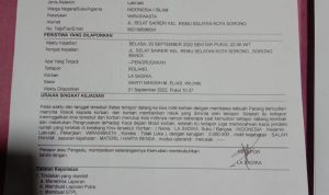 Berdasarkan LP : B /382 / IX / 2022 /Papua Barat /Polres Sorong kota/ Polsek Sorong Timur.