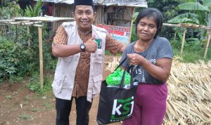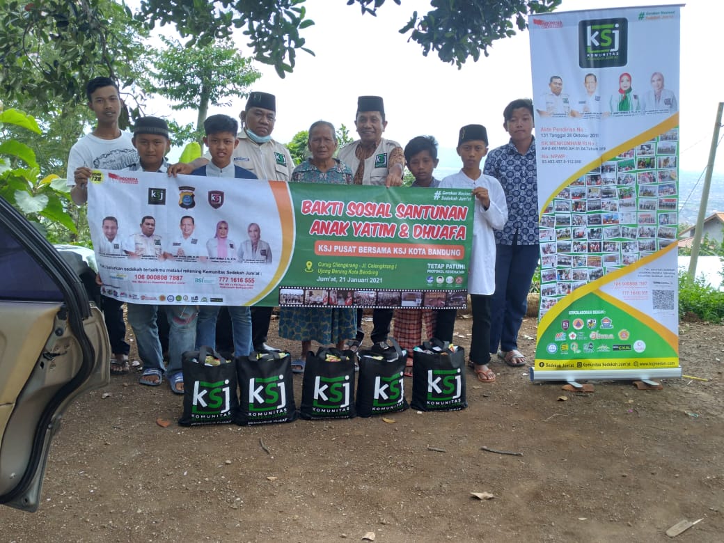 Relawan Komunitas Sedekah Jumat (KSJ) Bandung Provinsi Jawa Barat salaurkan puluhan paket sembako, makanan dan jajanan siap saji serta tali asih kepada anak yatim dan piatu serta janda duafa di RT 01, RW 03 Desa Cigupakan dibawah kaki Gunung Malayang Cangkering 1 Bandung Raya Provinsi Jawa Barat Jumat 21/01.