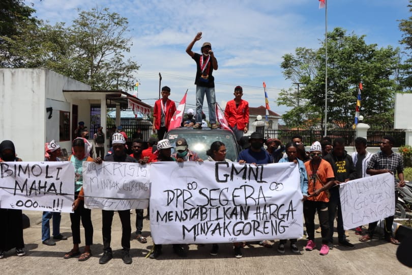 Kelangkaan minyak curah dan kenaikan harga Minyak Goreng Kemasan  di Indonesia khususnya di wilayah kota Sorong Papua Barat menjadi perhatian dari GMNI (Gerakan Mahasiswa Nasional Indonesia) dengan melakukan unjuk rasa damai menyampaikan pendapat di kantor DPRD Kota Sorong. (31/3/2022)