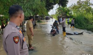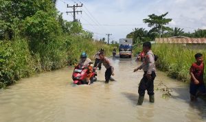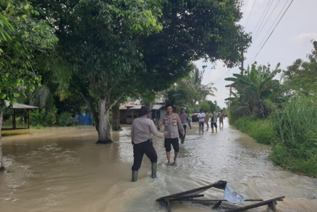 Kapolsek Medang Deras AKP AH Sagala.SH didampingi beberapa personil anggota langsung turun ke titik kelokasi banjir yang menimpah beberapa kawasan pemukiman warga yang berada di Kecamatan Medang Deras, Kabupaten Batu Bara. 13 Oktober 2025.