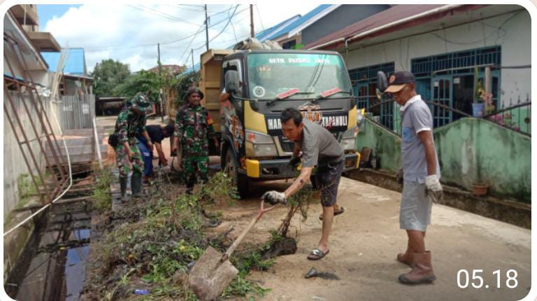Babinsa Koramil 1802-01/Sorong Kota Serda Nanang Ismail beserta 9 orang anggota melaksanakan Karya Bakti di Jl.Poncowati Rt 03 Rw 04 Kelurahan Klawuyuk,Distrik Sorong Timur.Selasa,(05/04/2022).