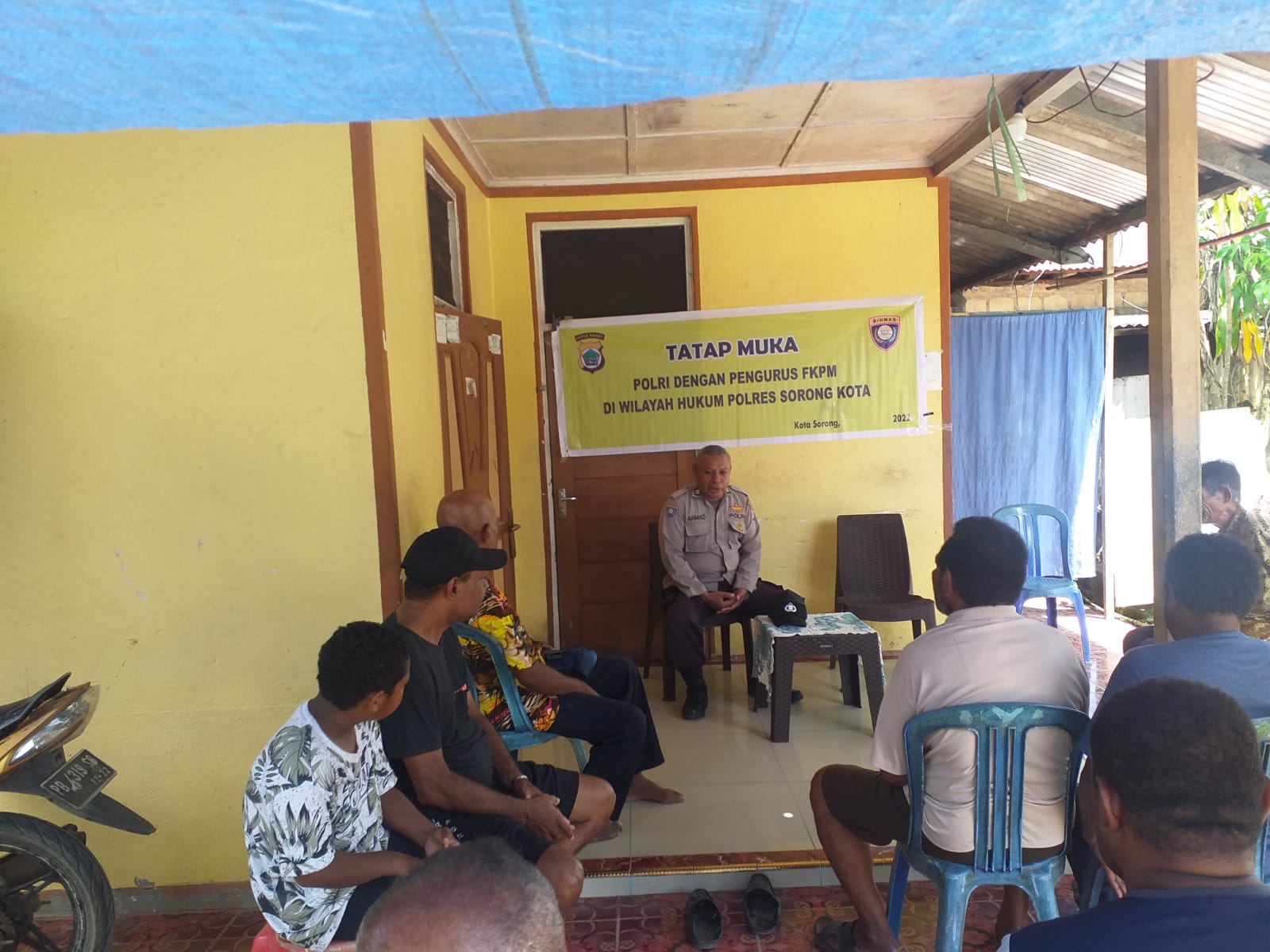 Sorong Papua Barat – Bhabinkamtibmas Polsek Sorong kota Aiptu Ahmad Hayale, melaksanakan kegiatan Komunikasi Sosial (Komsos) tatap muka bersama pengurus dan warga binaanya yang bertempat di kediaman bapak Dorteus Yumaki ,jalan putri malu RT.002/RW.01,Kelurahan Klademak Kota Sorong Papua Barat Rabu (02/11/2022).