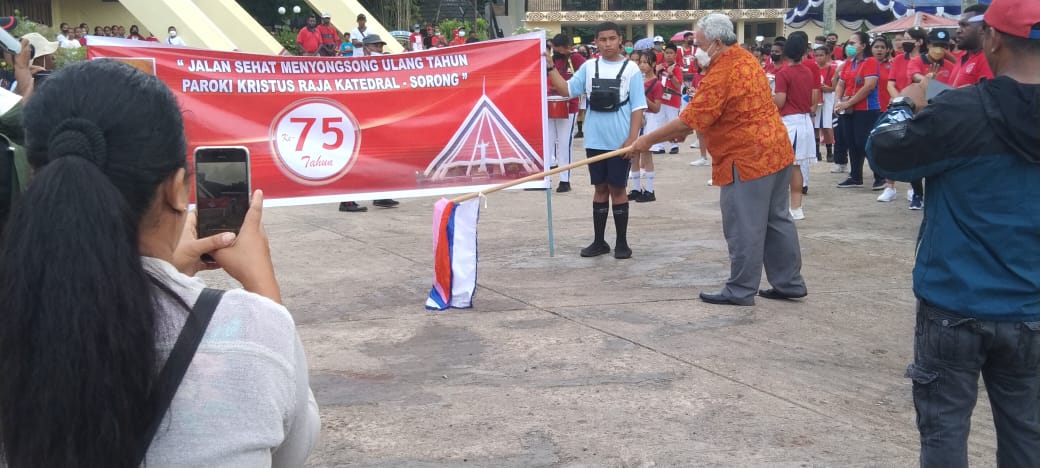 Salah satu kegiatan menyongsong ulang tahun ke-75 tahun Tahun, Paroki Kristus Raja Katedral Sorong melaksanakan jalan santai dengan route Gereja Katedral – Surya – Mandala – Polsek Sorong Barat – Siswa – Toko Dingin – lingkaran – pelabuhan – halte Doom – jalan Yos Sudarso – Lido – ex Pasar Boswezen – foto indah Tanjung Baru dan finish kembali di Gereja Katedral Kampung Baru.
