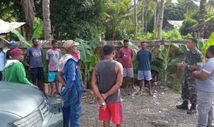 Dipimpin Wadanramil Kapten Inf Samuel Tamaela beserta jajarannya melaksanakan Komsos bersama Ketua Pemuda Kelurahan Saoka Pak Keli Worimon Tokoh pemuda Kelurahan Saoka Distrik Maladumes Sorong Barat. Jumat, (17/06/2022).