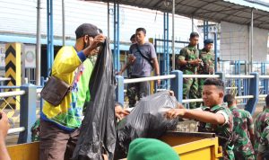 Dalam pelaksanaan karya bakti, para Prajurit TNI dari Angkatan Darat, Laut dan Udara bersama dengan masyarakat tampak antusias bergotongroyong memungut sampah yang ada di aliran Sungai Kapuas.