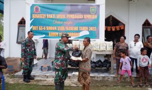 Sorong Papua Barat Daya – Komandan Kodim 1802/Sorong Letkol Cpn Andi Sigit Pamungkas S.E.M.I.P diwakili oleh Pasiter Kodim 1802/Sorong Kapten Inf Semba menggelar bakti sosial dalam rangka HUT ke – 6 Kodam XVIII/Kasuari, bertempat kampung aimo distrik aimas kabupaten sorong. Rabu (14/12/2022).
