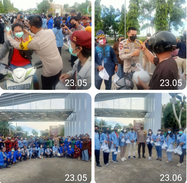 Maka Wahyu Tri Utomo bersama Pengurus Badan Eksekutif Mahasiswa (BEM) memilih tidak mengikuti aksi dan melaksanakan aksi sosial berbagi takjil bersama tokoh masyarakat dan wartawan sertra di backup Polres Kubu Raya.