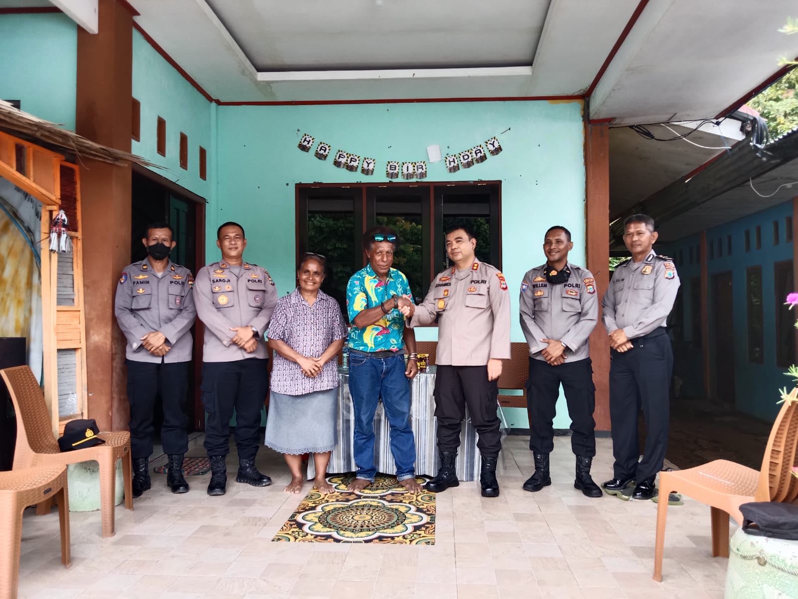 Kapolres Sorong Kota AKBP Johannes Kindangen, S.I.K., M.Si. Bersama Kapolsek Sorong kota beserta anggota Sat Binmas Polres Sorong Kota,mengunjungi rumah Bapak David Kapisa (Tokoh Masyarakat Kompleks Sorpus) Kota Sorong Papua barat.selasa (04/10/2022)