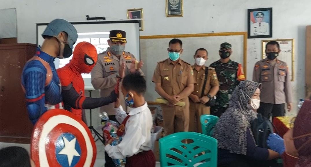Usut punya usut, para tokoh anime pahlawan super tersebut didatangkan langsung oleh Polres Tanggamus ke sekolah tersebut dalam rangka mendukung kegiatan vaksinasi.