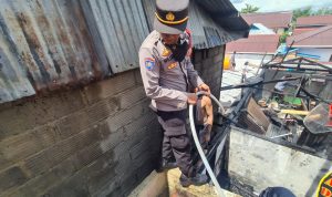 Personil Polres Sorong kota dengan sigap membantu memadamkan kebakaran yang terjadi pada satu unit rumah yang berada di belakang GOR Pancasila Jalan Selat sele lorong 3 Kota Sorong Provinsi Papua Barat. Senin (13/6/2022)