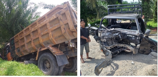 Setibanya di Tempat Kejadian dengan kondisi jalan sedikit menikung kekanan, tiba-tiba mobil Pick Up L300 mengalami oleng hingga menerobos jalur kanan namun dalam waktu yang bersamaan datang dari arah berlawanan Mobil Dump truk BK 8327 MC yang dikemudikan Muliadi, karena kondisi jalan yang sedikit agak menikung akhirnya tabrakanpun tidak terhindari.
