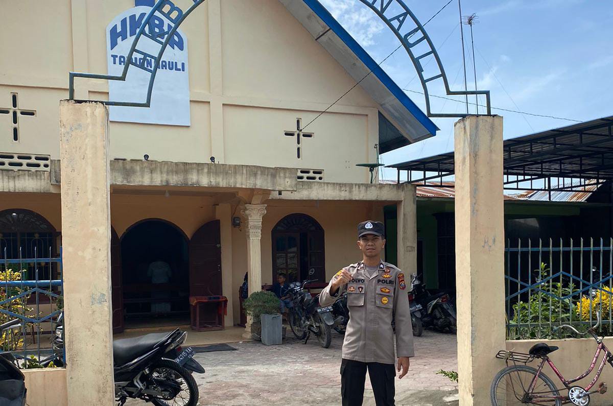 Peringati kenaikan Isa Al-Masih 2023 dengan tidak mengenal kata lelah kembali Kapolsek Labuhan Ruku AKP Ferry Kusnadi SH.MH melalui Bripka Riswandi bersama personil sat narkoba Polres Batu Bara Briptu Ricky Volvo berikan pengamanan di Gereja Tapian Nauli, yang terletak di Dusun I, Desa Sei Muka, Kecamatan. Datuk Tanah Datar, Kabupaten. Batu Bara. 18 Mei 2023 pukul 10 : 00 wib.