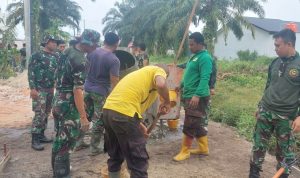 Tanpa ada rasa mengeluh, Satgas dan masyarakat terus bergotong royong melanjutkan sasaran fisik semenisasi tersebut.