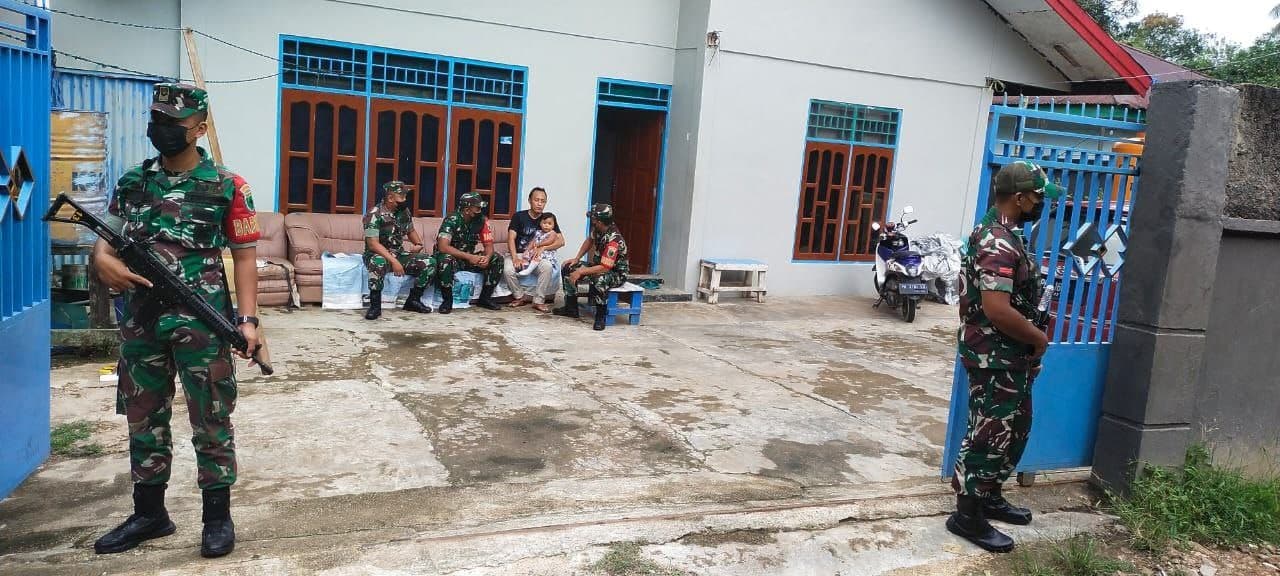 Menyukseskan serbuan Vaksin Covid-19, Koramil Persiapan Sorong Utara Kodim 1802/Sorong Serda Gunawan beserta 9 anggota melaksanakn komunikasi sosial bersama kelurga Pak Ruben warga Distrik Sorong Utara. Jumat, (25/02/2022)