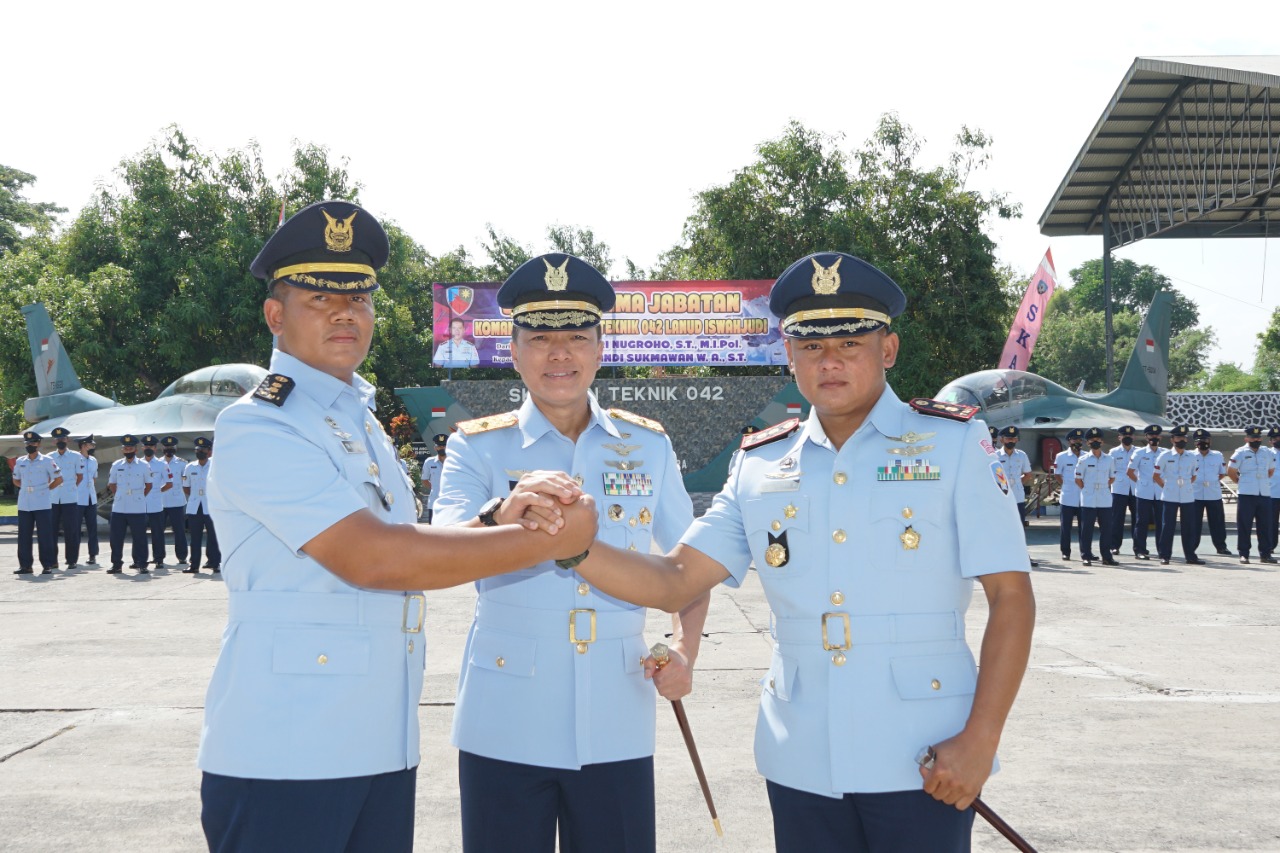 Magetan – Komandan Lanud Iswahjudi Marsma TNI Irwan Pramuda, SE, MM memimpin Serah Terima Jabatan Komandan Skadron Teknik 042 dari Letkol Tek Tri Nugroho, ST, M.I.Pol kepada pejabat baru Letkol Tek Andi Sukmawan Wira Atmaja, ST di Hanggar Skadron Teknik 042 Lanud Iswahjudi. Sabtu, (30/9 /22)