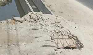 Begitu juga dengan titi yang dibangun hanya menggunakan semen yang sangat tipis akhirnya pecah hingga terlihat rangka besinya.