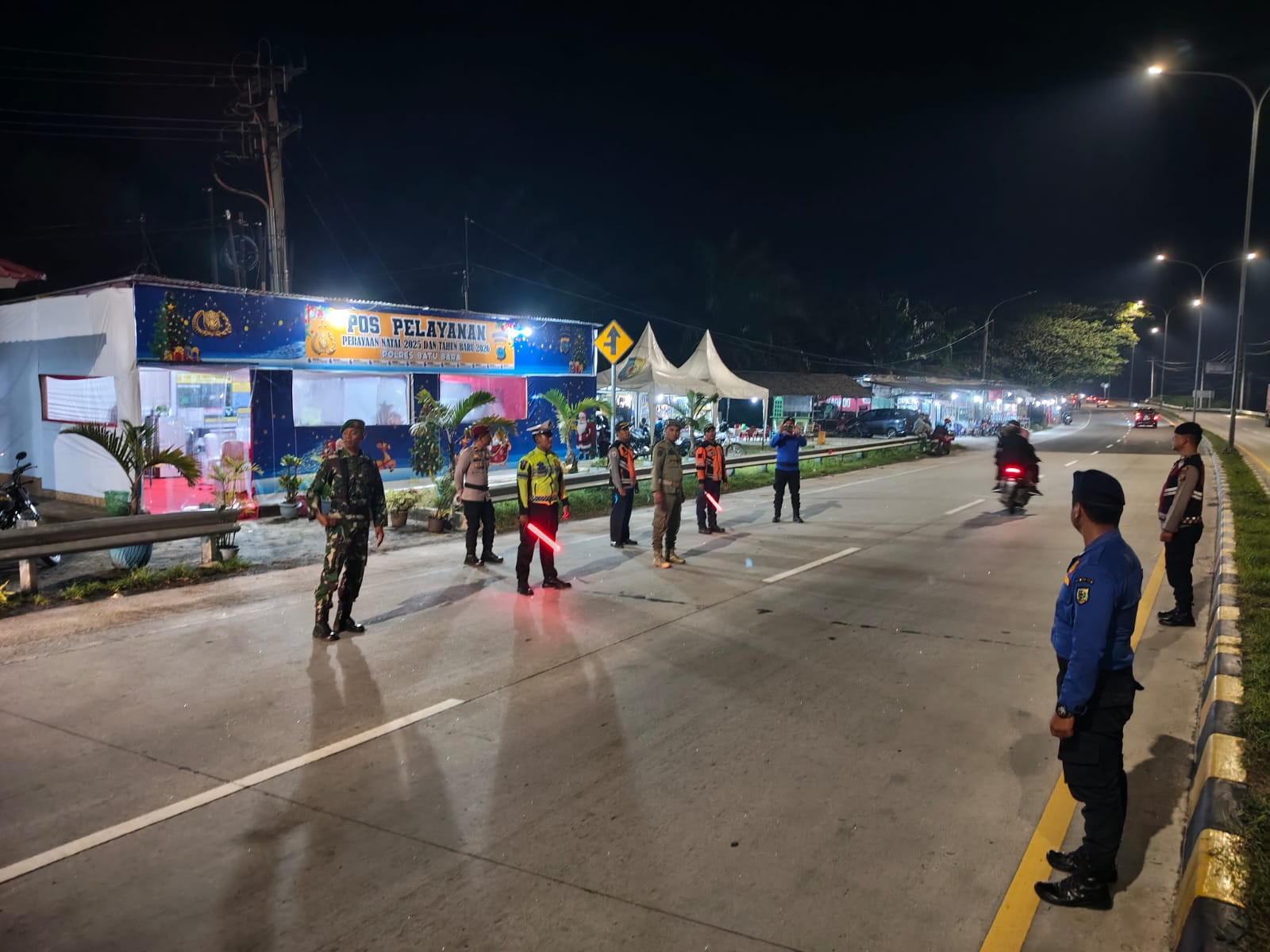 Tingkat Ops Lilin Toba 2025, Polres Batu Bara tempatkan Pos Pelayanan II di Pintu Tol Lima Puluh, dengan Ka Pos Pelayanan Ipda Wira Hidayat dan beberapa Personil Anggota Pos Pelayanan. 28 Desember 2025 pukul 21.00 wib.