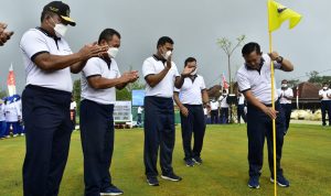Setelah penyampaian kata sambutan Panglima Koarmada III, melaksanakan pelubangan Hole pertama Arafuru Mini Golf Katapop, dilanjutkan pemasangan Cup Hole dan Tiang Bendera Hole serta pemukulan bola asap.