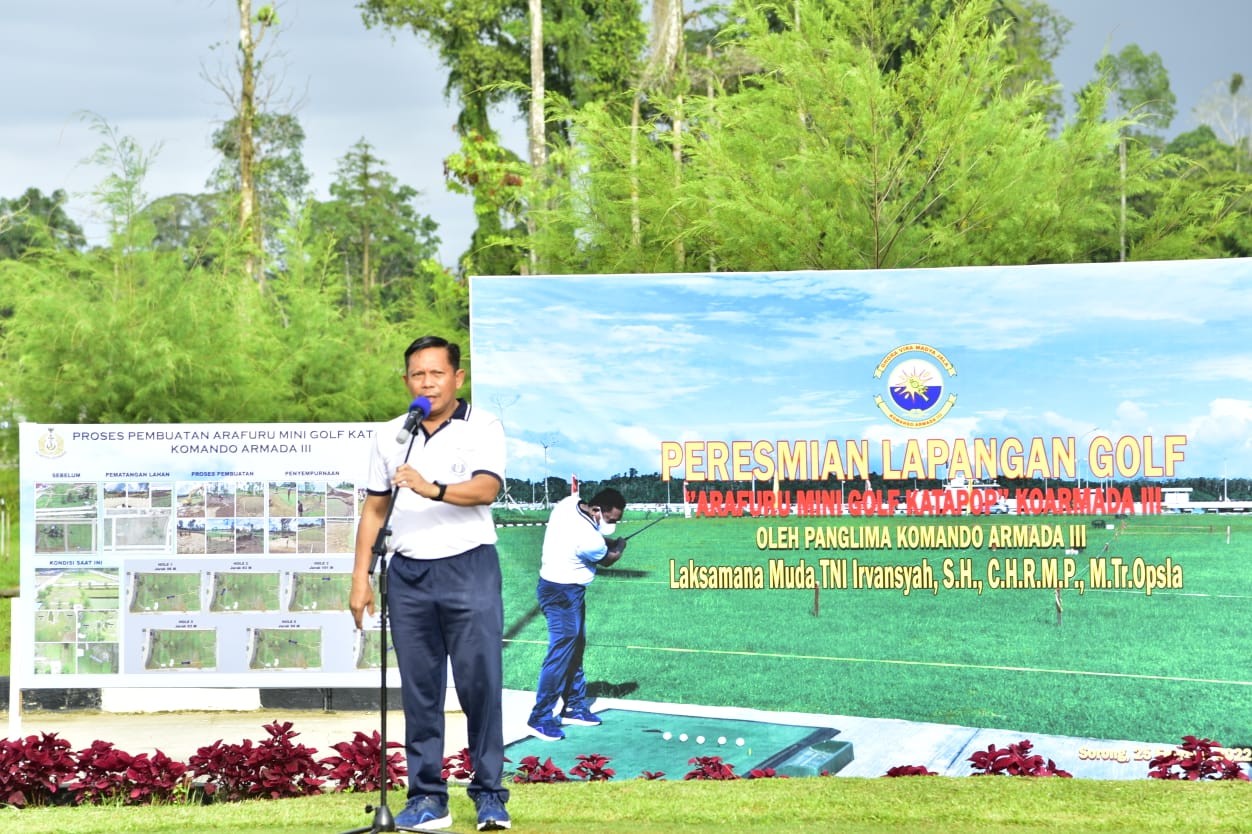 Dalam kesempatan tersebut, Panglima Koarmada III mengucapkan rasa terimakasih atas pembanguan Lapangan Arafuru Mini Golf Katapop yang dikerjakan secara bersama-sama oleh prajurit Koarmada III, walaupun belum sempurna namun akan terus diupayakan untuk lebih baik.