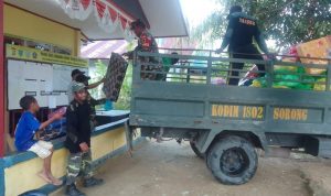 Sorong Papua Barat – Babinsa Koramil 1802-01/Sorong Kota. Sertu Agus Hariyanto mendampingi penyerahan sembako yang bersumber dari UMS kota sorong dan perkumpulan manguni kota sorong yang di serahkan kepada warga binaan yang terdampak banjir. Jumat, (09/09/2022).