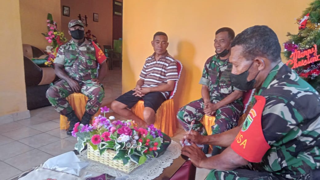 Babinsa Koramil 1802-02/Sorong Barat Serma Saudin beserta 9 orang anggota melaksanakan Komunikasi Sosial (Komsos) bersama Pendeta Gereja Imanuel Suprau Bapak Apolos Latunusa STh di Kelurahan Suprau,Distrik Maladumes,Kota Sorong.Jumat(11/02/2022).