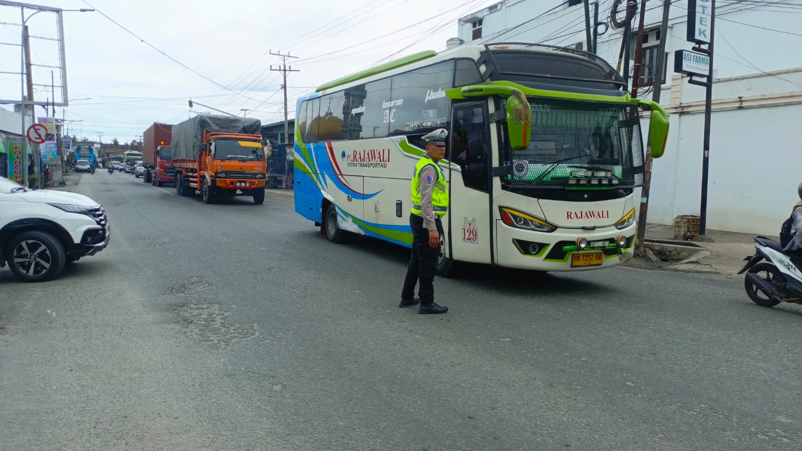 Pastikan kelancaran arus lalu lintas sore, kembali personil Sat Lantas Polres Baru Bara berikan pengaturan jalan menggunakan Kibas bendera. 23 November 2025 pukul 17.00 wib.