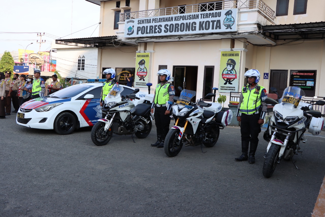 Kota Sorong – Menjelang Natal 2022 dan Tahun Baru tahun 2023 Polri melaksanakan Operasi Terpusat dengan sandi operasi Lilin – 2022 yang ditindaklanjuti oleh Polda Papua Barat melalui Polres Sorong Kota dengan melaksanakan Apel Gelar Pasukan Operasi Lilin Mansinam 2022 di Mapolres Sorong Kota pada Jumat (23/12/2022).