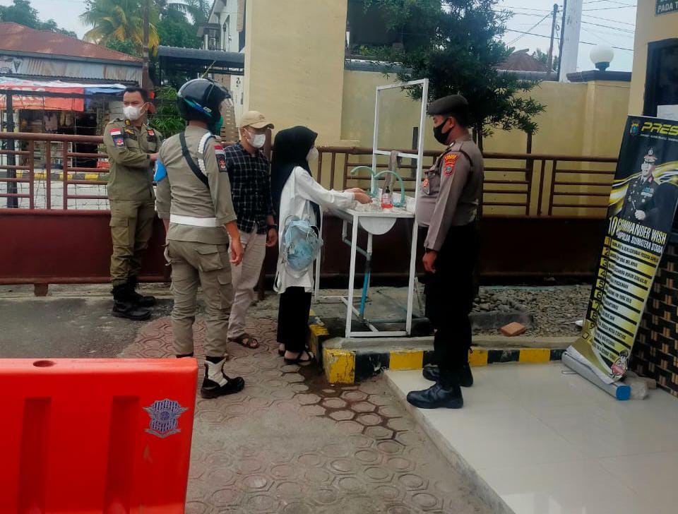 Banyak masyarakat yang mempunyai keperluan datang ke Polres Batu Bara ketika melintas di Penjagaan Polres Batu Bara dengan dikawal Personil terlebih dahulu mencuci tangan dan memakai Handsanitizer yang telah disiapkan personil serta melalukan Scan Barcode Aplikasi Peduli Lindungi.Β