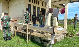 Sorong, Papua Barat– Babinsa Koramil Persiapan Salawati Kodim 1802/Sorong  Kopda Sukron melaksanakan komunikasi sosial dengan Pak Simon warga Kampung Kotlol, Distrik Salawati Selatan, Kabupaten Sorong. Selasa (09/11/2021).