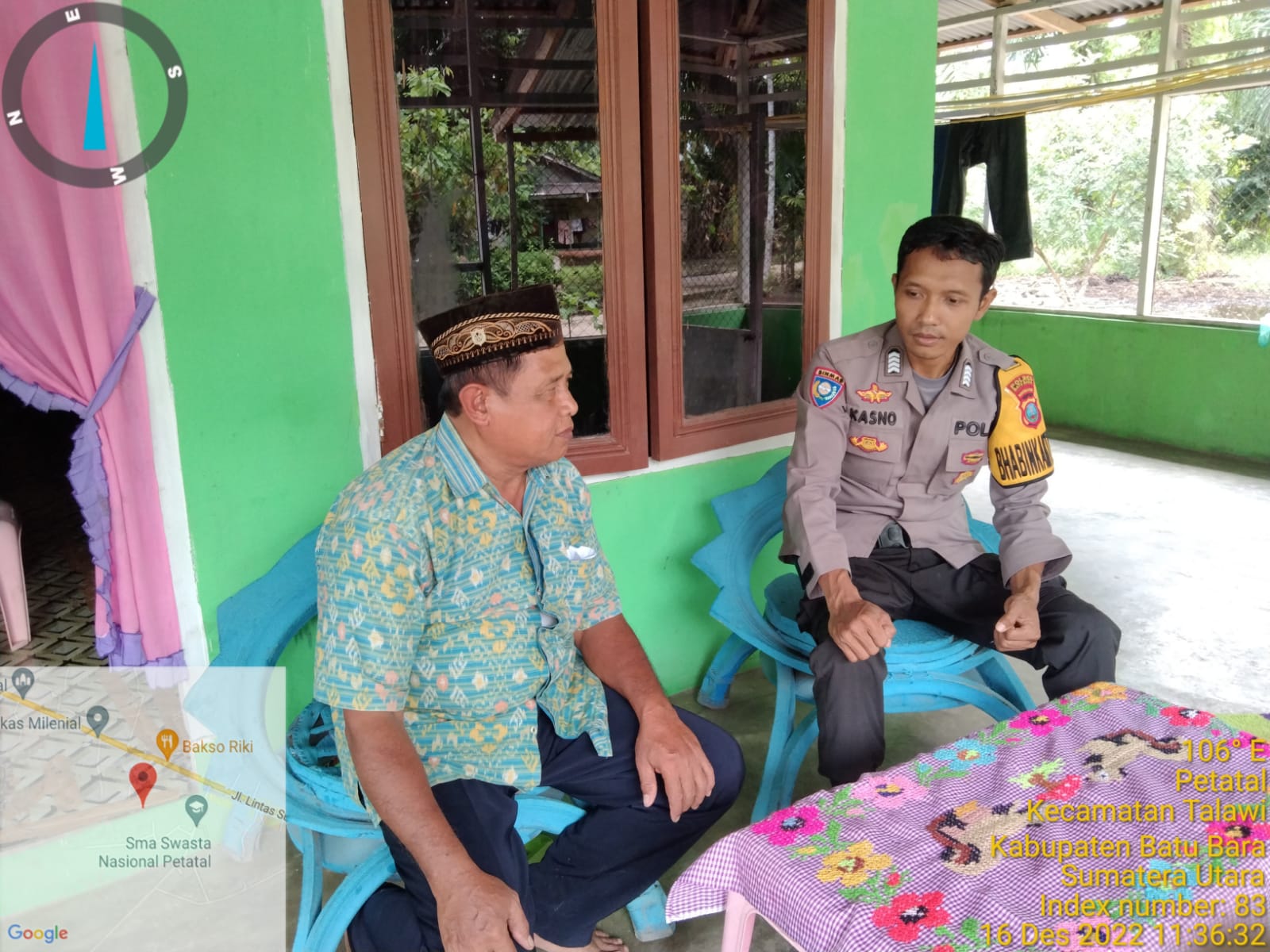 Tujuan Bhabinkamtibmas menyambangi Desa Petatal, Kecamatan Datuk Tanah Datar, Kabupaten Batu Bara untuk memberikan himbauan terbaik kepada