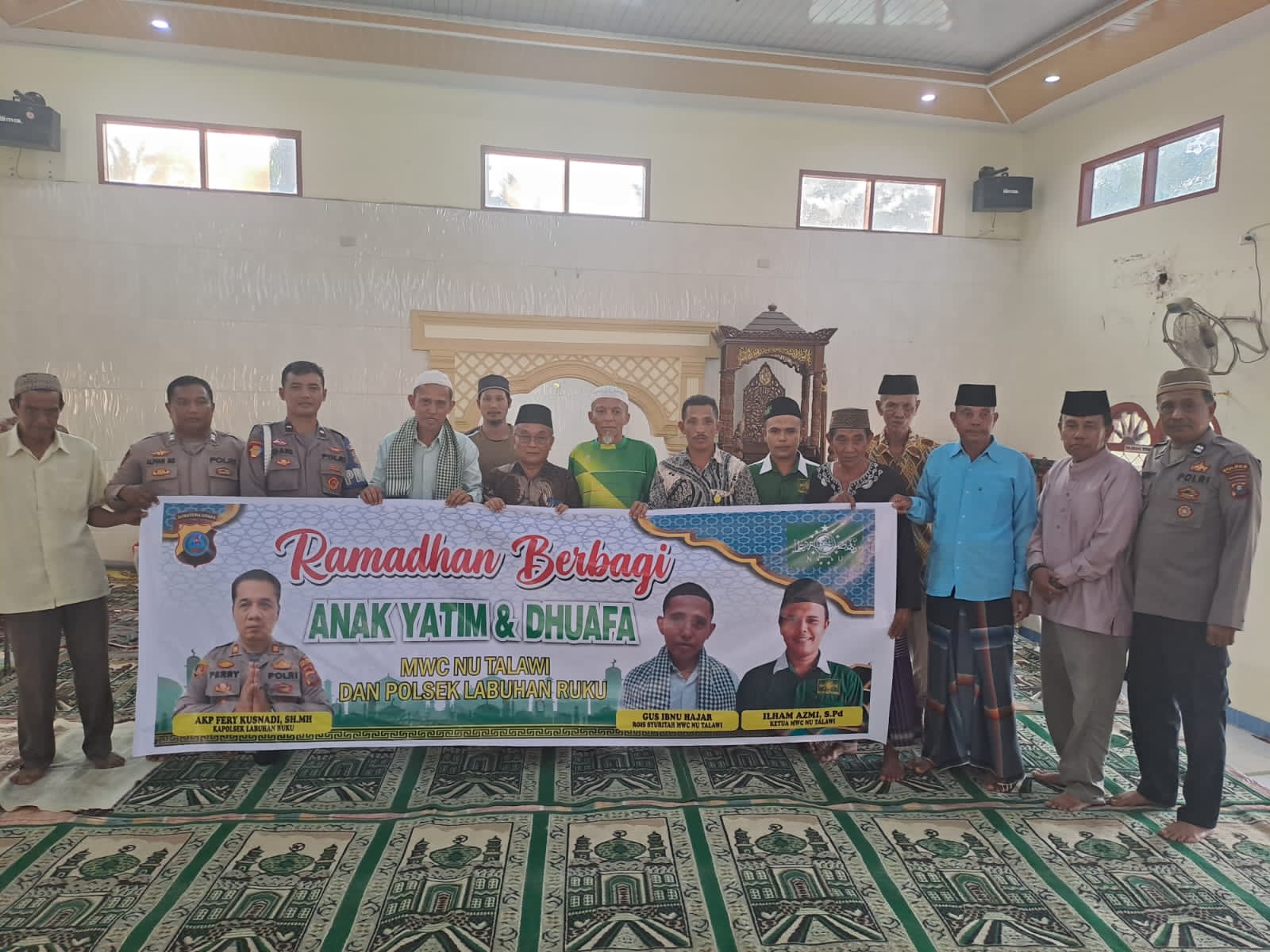 Selain Kapolsek Labuhan Ruku, ramadhan berbagi tersebut diikuti juga oleh,” Kanit Binmas Iptu Ahmad Fahmi.SH, Ketua PC NU Batu Bara Baktiar Mogaza.S.Pd.M.Hum, Wakil Ketua PC NU Abdurahman Ali.S.Ag, Ketua BKM Masjid Al Amin H. Ilyas.S.Pd, personil Polsek Labuhan Ruku, Tokoh Agama dan para Undangan.
