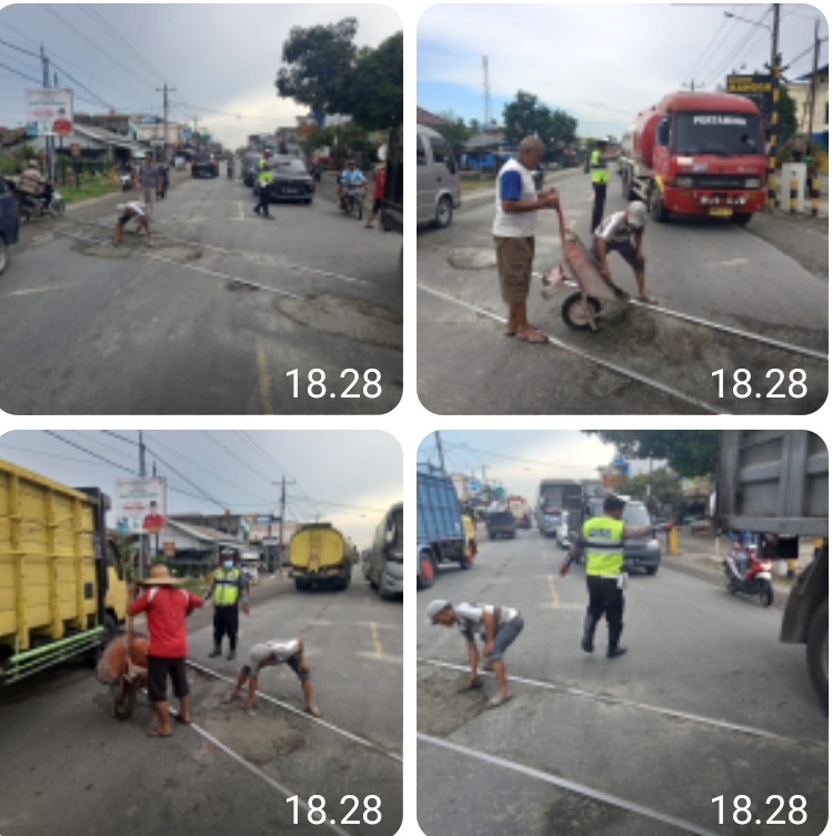 “Sehingga kami upayakan melakukan Survei dan Perbaikan Jalan di Perlintasan Kereta Api guna menciptakan Kamseltibcarlantas dengan menimbun dengan cor jalan yg berlobang di Perlintasan Kereta Api” ujar Kasat.