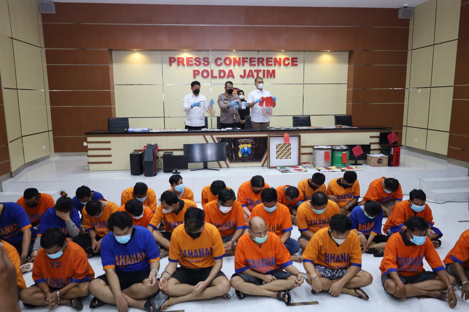 Hal itu disampaikan Kabid Humas Polda Jatim Kombes Pol Dirmanto, bersama Dirkrimsus Kombes Pol Farman dan Dirkrimum Kombes Pol Totok Suharyanto, di ruang pres rilis Humas Polda Jatim.