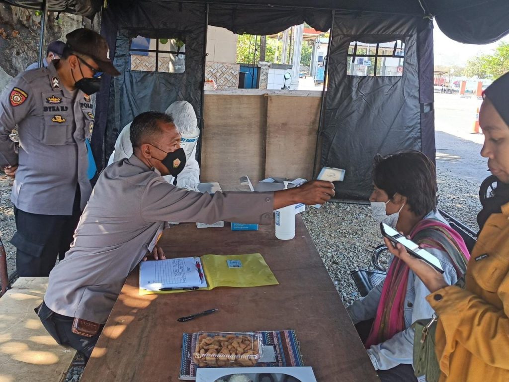 Tim gabungan kesehatan Angkutan Sungai dan Penyeberangan (ASDP) pelabuhan Poto Tano Kecamatan Poto Tano Kabupaten Sumbawa Barat bersama TNI-POLRI melakukan swab antigen secara acak terhadap pelaku perjalanan yang masuk wilayah Kabupaten Sumbawa Barat melalui pelabuhan Poto Tano, Kamis (27/5/2021).