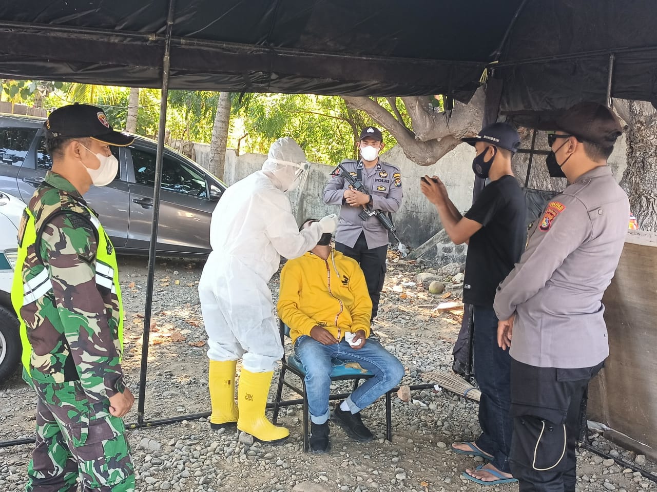 Tim gabungan kesehatan Angkutan Sungai dan Penyeberangan (ASDP) pelabuhan Poto Tano Kecamatan Poto Tano Kabupaten Sumbawa Barat bersama TNI-POLRI melakukan swab antigen secara acak terhadap pelaku perjalanan yang masuk wilayah Kabupaten Sumbawa Barat melalui pelabuhan Poto Tano, Kamis (27/5/2021).